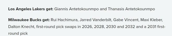 湖人得到:字母哥+字母哥哥;