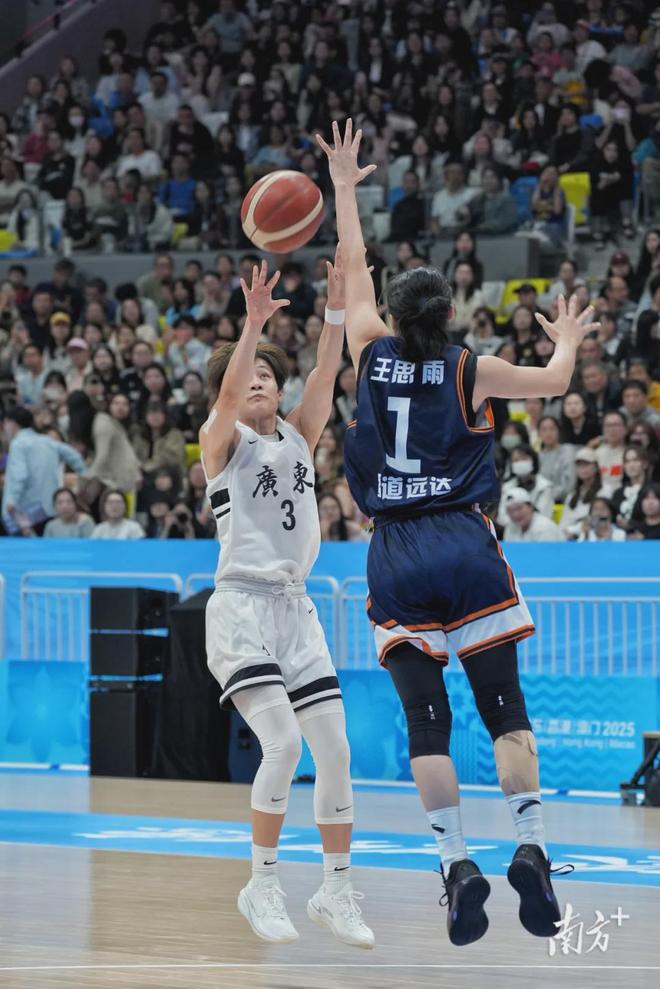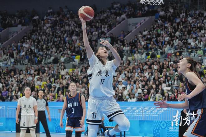 11月15日晚,佛山顺德德胜体育中心篮球馆内,第十五届全国运动会篮球项目(女子成年组)迎来巅峰对决,广东女篮火力全开、配合默契,以74:68战胜实力强劲的四川蜀道远达队,夺得冠军。其中,广东队杨舒予砍下全场最高的22分,黄思静、陈明伶均得分上双。