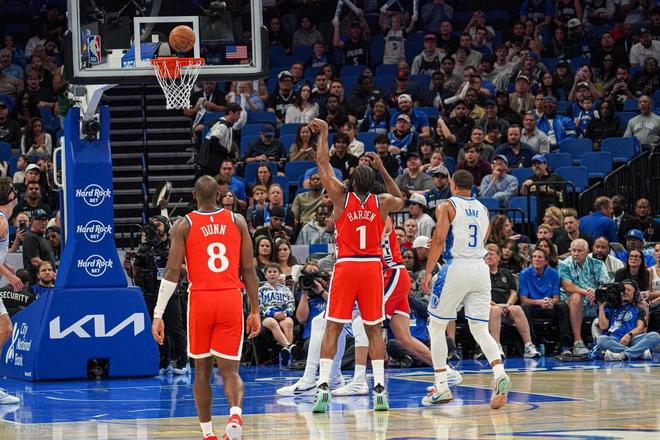 比赛简单回顾:比赛开场阶段,魔术队迅速进入状态,凭借默契的团队配合与高效进攻迅速抢占主动权,建立起初期领先优势。面对被动局面,哈登挺身而出扛起快船进攻大旗,既通过精准传球串联队友组织攻势,又凭借个人突破与投篮攻坚得分,带领球队紧咬比分不放。