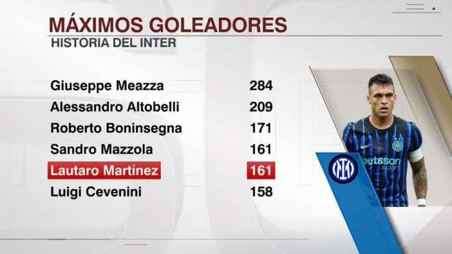 而凭借这粒进球,劳塔罗以36球超越克雷斯波独占阿根廷队史射手榜第四位,距离身前41球的阿圭罗差距也不远,明年世界杯或许会让跻身国家队射手前三行列。而有趣的是,在上一轮对阵拉齐奥比赛中的进球是劳塔罗代表国米打进的第161球,这也让他追平队史传奇马佐拉并列射手榜第四位,本赛季有望超越第三位的博宁塞尼亚进入三甲行列。以上目标基本都能顺利实现,这也能让他成为俱乐部和国家双料历史级前锋!